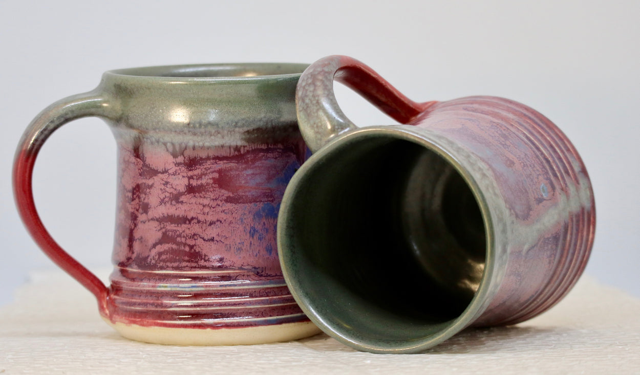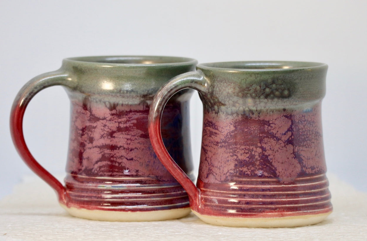 Pair of coffee mugs in stoneware clay fired in a gas kiln at 1260 degrees celsius. Microwave safe.