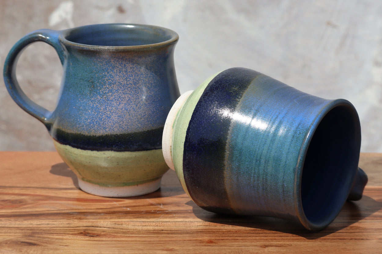Pair of coffee mugs handmade in stoneware clay, fired in a gas kiln. Microwave safe.