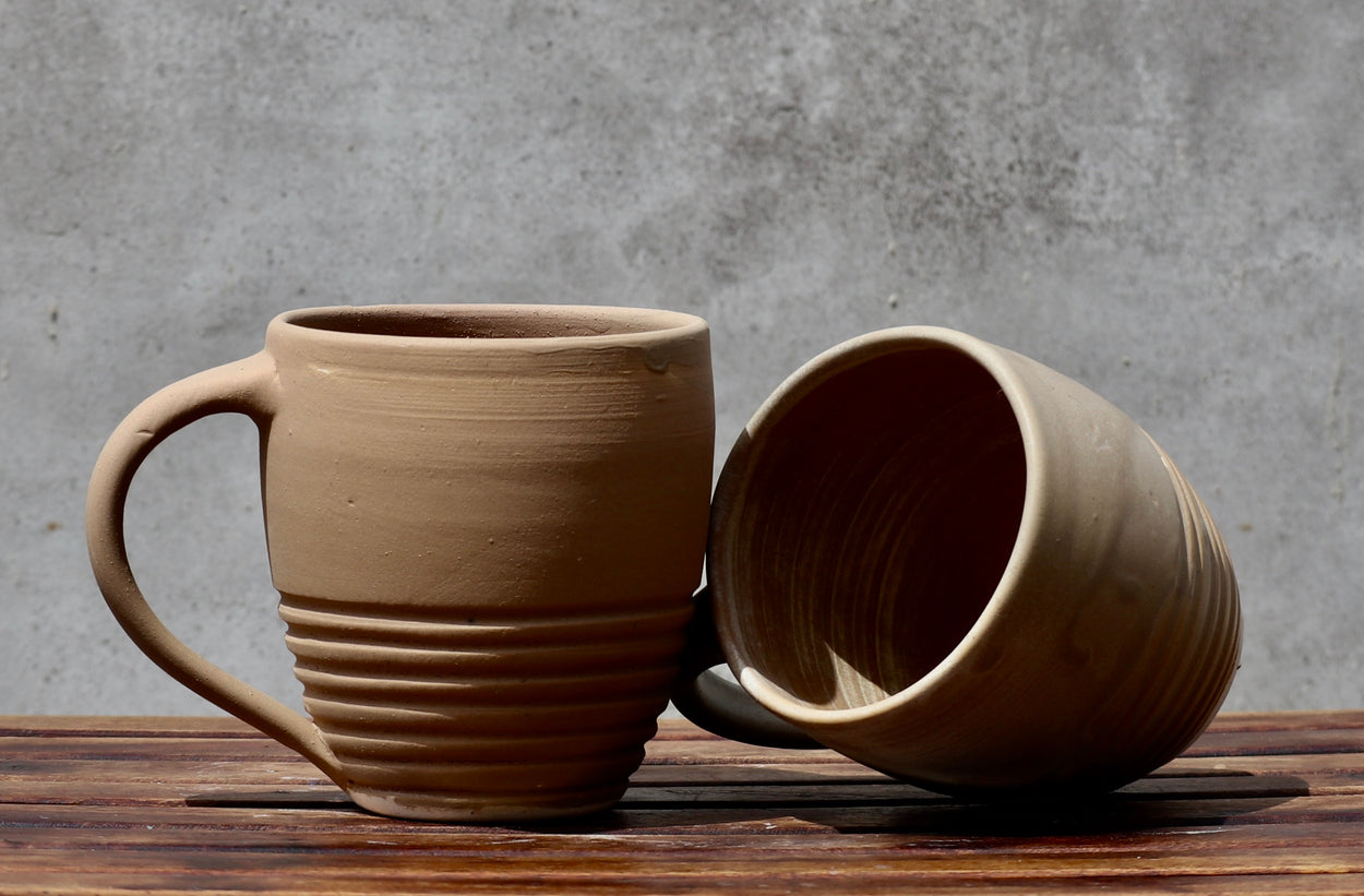 A pair of hand-thrown stoneware mugs can carry about 150 ML. The beauty of this matt glaze is to enjoy the minimalism of clay. The texture is grainy and feels as earthy as it could be! The unevenness is the uniqueness about each work. It has been fired in a gas kiln at 1280 degrees celsius. Since each work is handmade there will be a slight difference in the size and color. Microwave safe.
