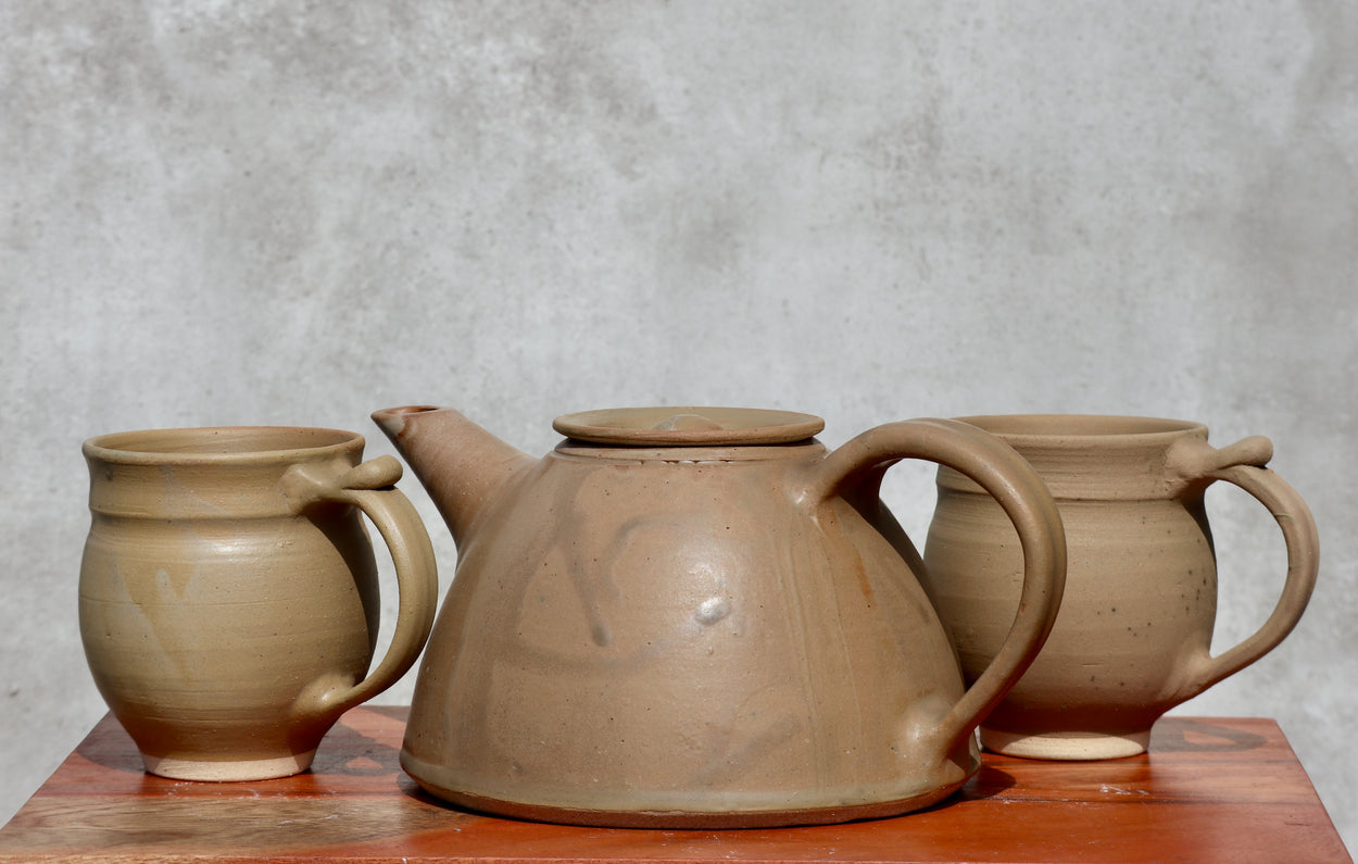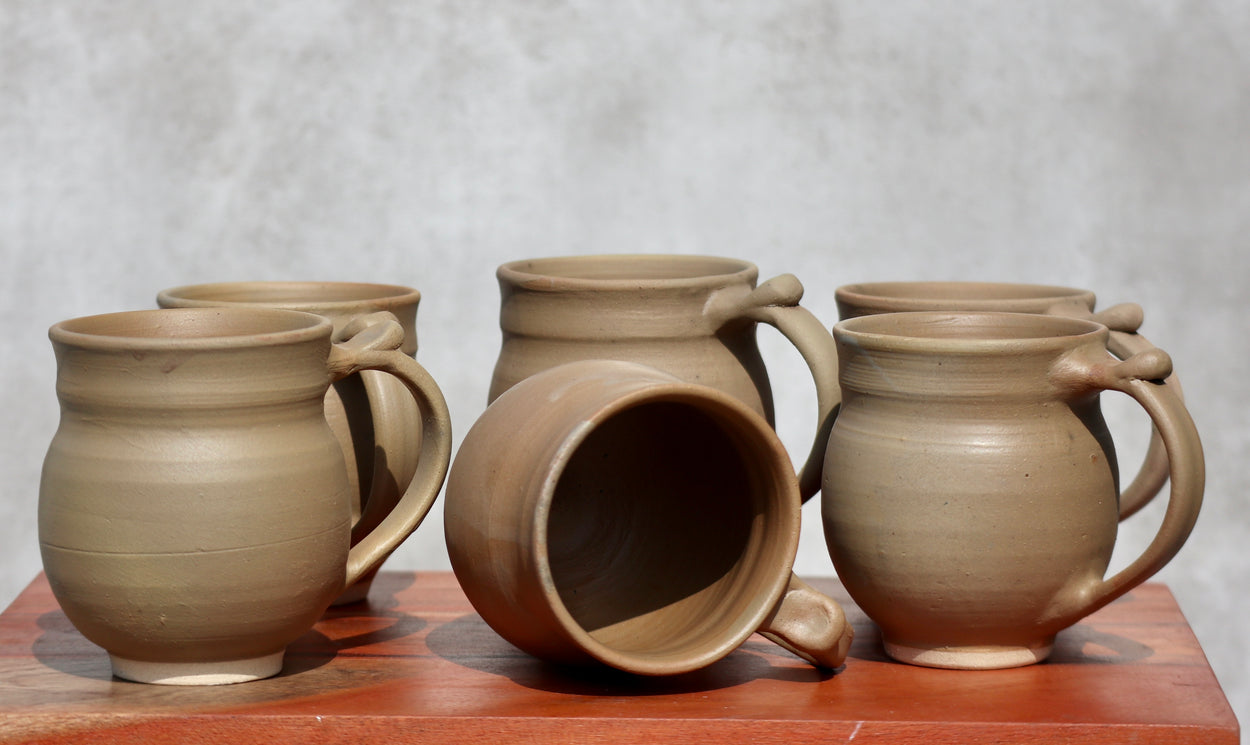 A pair of hand-thrown stoneware mugs can carry about 150 ML. The beauty of this matt glaze is to enjoy the minimalism of clay. The texture is grainy and feels as earthy as it could be! The unevenness is the uniqueness about each work. It has been fired in a gas kiln at 1280 degrees celsius. Since each work is handmade there will be a slight difference in the size and color. Microwave safe.