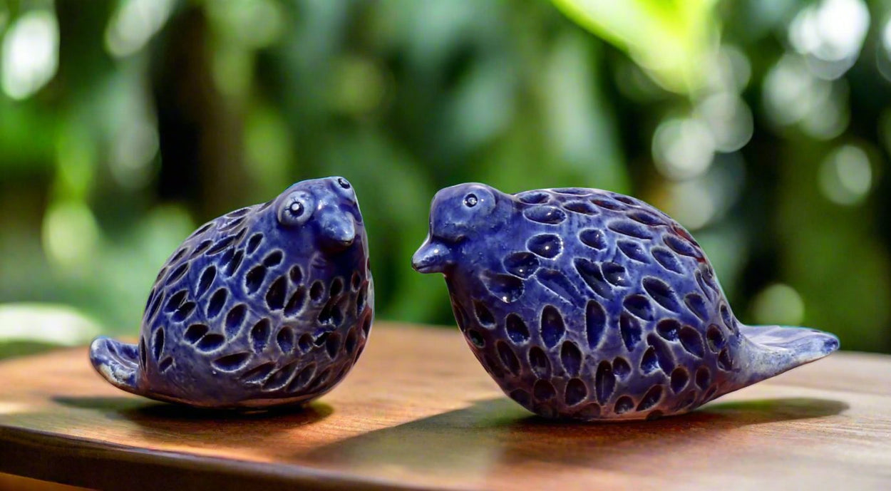 Continue shoppingA pair of hand-built red glazed birdies can create a lot of chirpiness to any corner. Fired in a gas kiln at 1260 degrees celsius. They are about 2-3 inches tall and 3-4 inches wide.